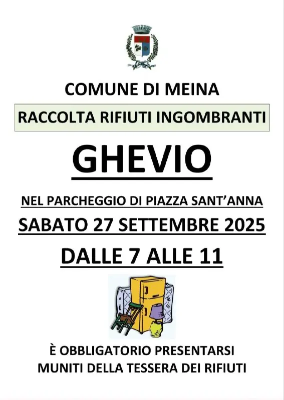 Raccolta Rifiuti Ingombranti: Ghevio, 27 settembre dalle ore 7.00 alle ore 11.00.
